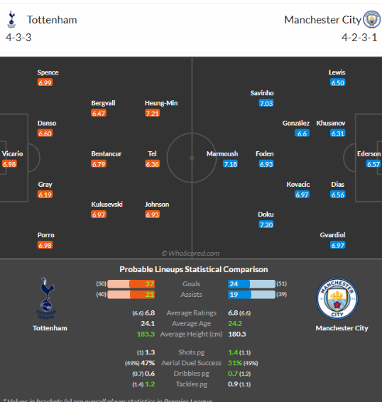이번 경기에서 손흥민이 선발 출전할 가능성이 높으며, 맨시티 역시 부상에서 복귀한 홀란이 공격을 이끌 것으로 예상됩니다.